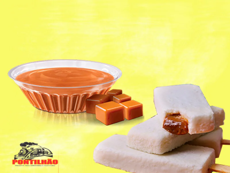 Caso não tenha a forma própria para recheio, colocar a calda na forma e aguardar o congelamento das paredes. Em seguida tirar a calda do centro e rechear com o doce de leite até pouco antes de completar a forma. Voltar a calda para "fechar" o picolé, completando a forma até o final e assim voltar para a máquina para congelamento.